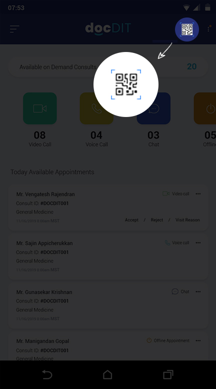 Open the docDIT App menu on the top right & tap on Scan QR See How